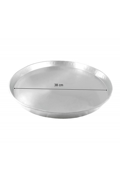 38 cm yuvarlak alüminyum tepsi, yüksek ısıya dayanıklıdır ve fırınlarda güvenle kullanılabilir.